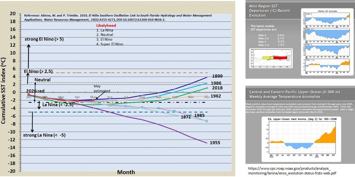 Abtew, W. and P. Trimble. 2010. El Niño Southern Oscillation Link to South Florida Hydrology and Water Management Applications. Water Resources Management, 24(5):4255-4271,