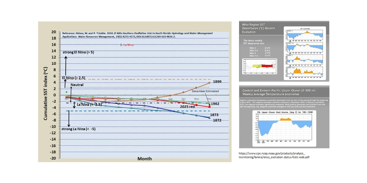 2025 is starting at -0.7 degree C similar as 1872, 1873, 1889 and 2023. These were years following La Nina years. 1899 and 2023 ended as positive with 2023 as strong EL Nino. 1872 and 1873 ended La Nina. La Nina is developing similar to 1962 with potential drought in spring 2026 for South Florida with respective La Nina impacts on other parts of the globe. November 2025 is already a drought month in South Florida.